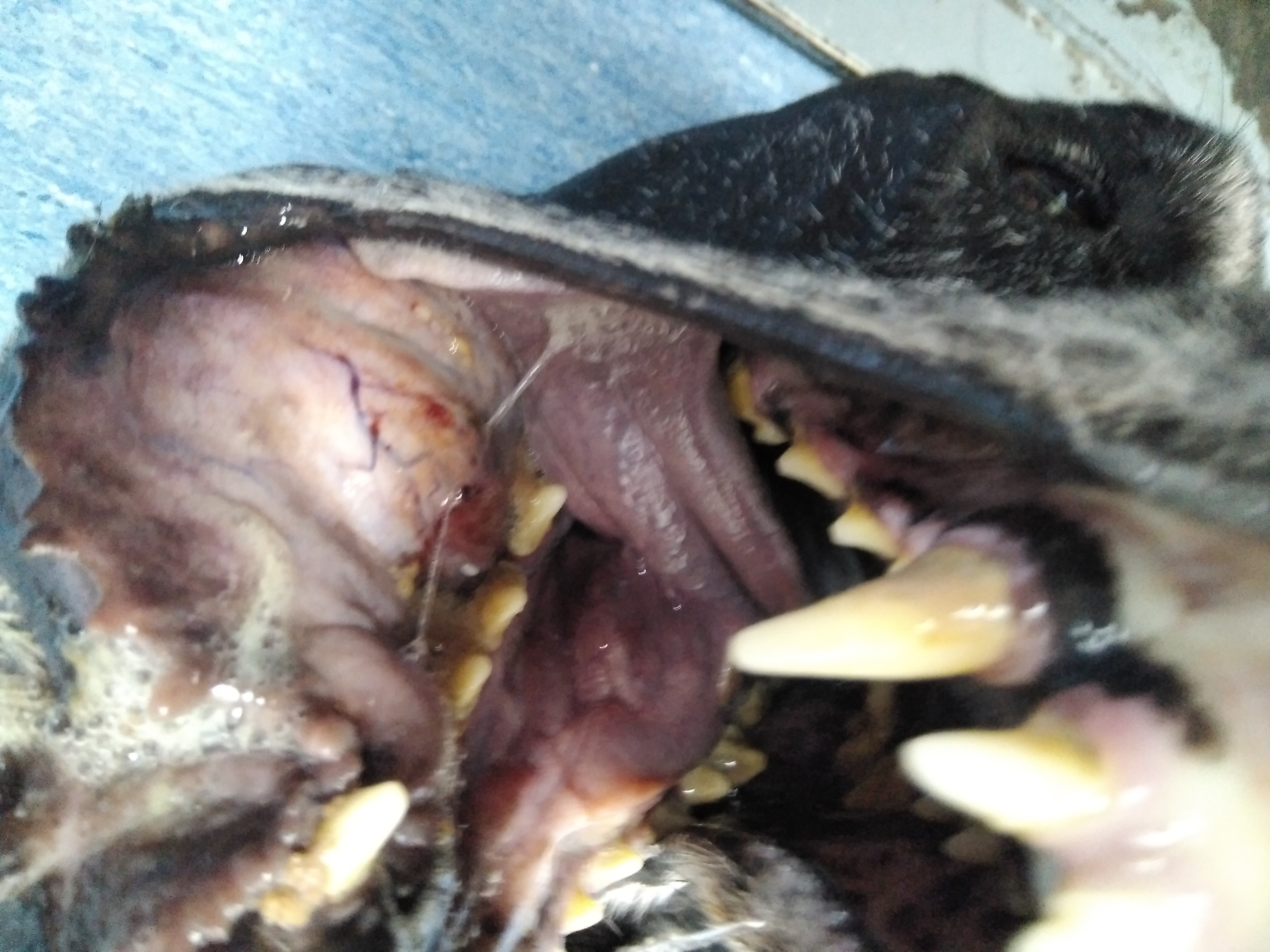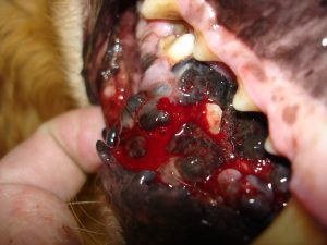 Melanoma oral ulcerado en un perro