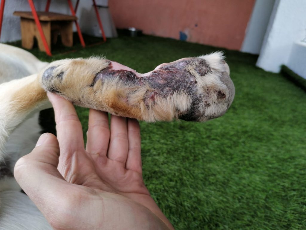 Teo recuperó su pata, aunque hubo que amputar sus falanges.