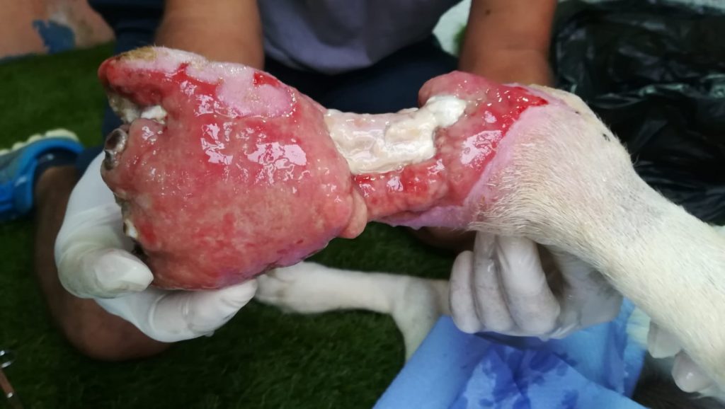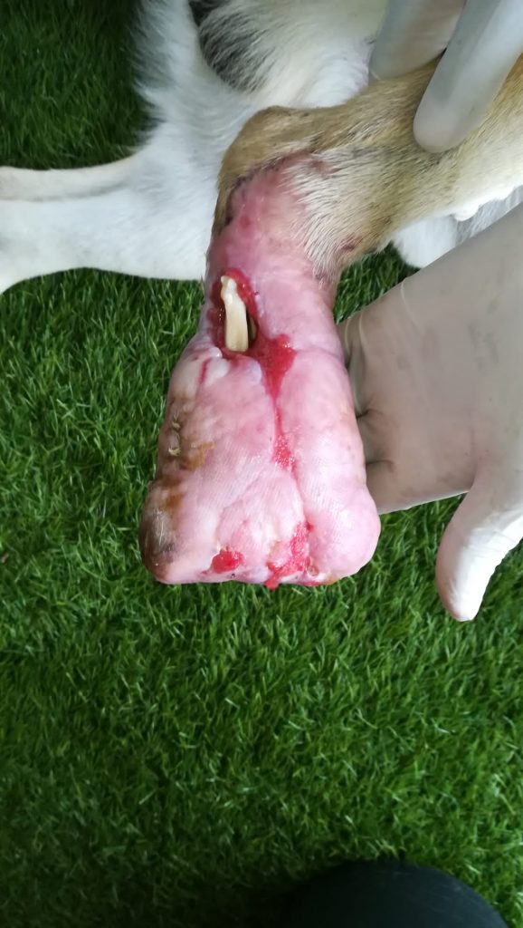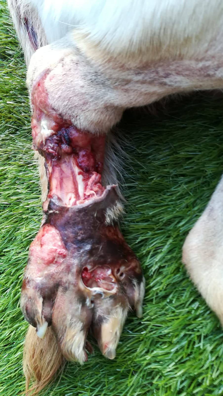 Te comparto una experiencia con VetAid: Teo sufrió una necrosis distal al tarso. Mi primera opción fue lógicamente amputar esa extremidad, pero el propietario me rogó alguna otra opción.